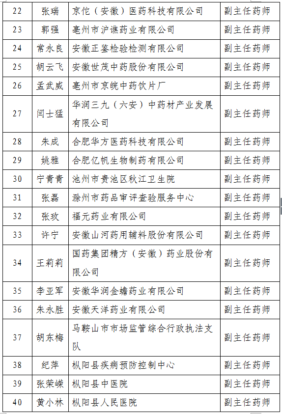 2025年度全省药学专业高级职称评审通过人员名单公示