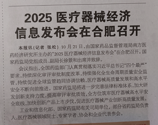 【2025.10.27,《医药经济报》头版】    2025医疗器械经济信息发布会在合肥召开